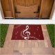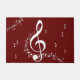 G Clef entre as notas de música em um vermelho profundo. O fundo vermelho escuro faz as notas brancas brilhantes pop. Design de música branca e marrom,