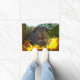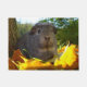Foto adorável de uma cobaia marrom cercada pelas folhas de outono.