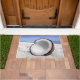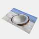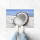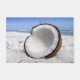 Este tapete de porta tem uma legal fotografia de um coco numa praia.