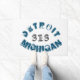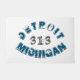 O design de tipografia apresenta "Michigan" e "Detroit" em texto curvo com prefixo do código de área 313 para a área de Detroit, em fontes de aparência grunge/angustiada.
