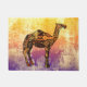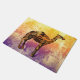Offbeat e lindo, este tapete de porta realmente faz uma entrada! O design gráfico original apresenta um camelo abstrato calico em tons negros de ouro e ameixa.
