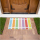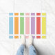 Padrão geométrico linear, retangular, listrado, de tons de arco-íris pastel azuis, laranja, verde, rosa, roxo, vermelho e amarelo.