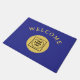 Crie uma primeira impressão poderosa com este tapete com logotipo empresarial personalizado dourado e preto. Projetado para empresas modernas e pequenos negócios, permite adicionar o seu logotipo para uma entrada ousada e profissional. O estilo elegante dourado sobre preto cria um visual corporativo de luxo, perfeito para escritórios, vitrines, salões e espaços promocionais de marca. Durável e elegante para uso ao ar livre.