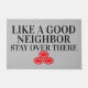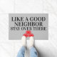 "Como um bom vizinho fique ali!" Engraçado Rude Doormat. Porta sarcástica.