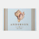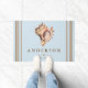 Ilustração elegante do escudo do conch no centro. O fundo tem uma cor azul macia e um texto personalizado do nome de família no marrom. Este doormat é elegante, chique, e faria uma grande impressão em seus convidados da casa porque são dados boas-vindas a sua casa!