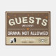 Bem-vindo ao estilo, mas sem drama, por favor! Esta porta única combina uma recepção elegante com uma mensagem humorística. 'Convidados Bem-vindos' cumprimenta seus convidados em uma fonte curva e suave moldada por estrelas cintilantes. A linha divisória com um símbolo vermelho do coração leva ao reviravolto: 'Drama não permitido. A caixa abaixo oferece espaço para o nome personalizado da família, acompanhado de símbolos decorativos - máscaras para drama e coração radiante como sinal de harmonia. A borda dupla em cores diferentes cria um efeito sofisticado. Um design que combina hospitalidade e estilo com um piscar os olhos - e faz um presente perfeito para amigos, familiares ou donos de casa.