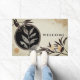 A porta de boas-vindas moderna apresenta um design abstrato artístico numa paleta a cores preta, bege cinza com boas-vindas personalizadas apresentadas em texto na moda elegante. Mostrado com "Bem-vindo" na fonte moderna do na moda, você pode personalizar com sua mensagem de boas-vindas personalizada, seu nome de família ou texto de sua escolha usando os campos fornecidos ou usar o botão "mensagem" para entrar em contato com o designer para obter ajuda. Uma maneira perfeita de receber convidados em sua casa ou dar como um presente de casamento ou de higiene doméstica para o casal na moda.