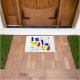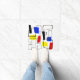Um design de abstrato de arte inspirado nos padrões modernos do meio século de início do século 20, com quadrados geométricos deformados em cores primárias vermelho, azul e amarelo.