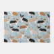 Cães de Corgi, bonitos, com casaco de cor vermelha e tripla, com estampas de pata e padrão de ossos de cães.