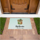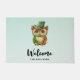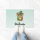Uma porta de boas-vindas com uma maravilhosa ilustração caprichosa. Uma grande coruja marrom vestindo um chapéu verde rico e gravata arco.