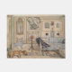 Esta imagem apresenta uma trabalho de arte do pintor sueco Carl Larsson (1853-1919), que era membro do movimento Artes e Artesanatos. A imagem mostra uma elegante cena doméstica em uma sala de estar de na moda; um cachorro está dormindo tranquilamente no tapete, ao lado de um sofá listrado azul e branco. A pintura original foi completada em 1894.