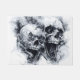 Crânio quebrado preto e branco com uma vibração do Dia das Bruxas. Contrastes negros e detalhes quebrados adicionam uma atmosfera assombrosa e assustadora.