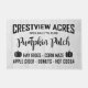 "CRESTVIEW ACRES PUMPKIN PATCH" - Este design de arte de outono fresco, divertido e festivo é adormecido com um Bat de Halloween e um par de abóboras flanqueando os lados. Colocamos isso em tudo, desde nossos travesseiros decorativos e cobertores, para receber tapetes e quebra-cabeça de serra, e muito mais. Mostre-o a cada outono para aquele toque especial de chorona ou deixe-o fora durante o ano em sua Casa de fazenda ou no País.