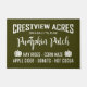 "CRESTVIEW ACRES PUMPKIN PATCH" - Este design de arte de outono fresco, divertido e festivo é adormecido com um Bat de Halloween e um par de abóboras flanqueando os lados. Colocamos isso em tudo, desde nossos travesseiros decorativos e cobertores, para receber tapetes e quebra-cabeça de serra, e muito mais. Mostre-o a cada outono para aquele toque especial de chorona ou deixe-o fora durante o ano em sua Casa de fazenda ou no País.