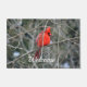 O cardeal do norte vermelho brilhante é uma primeira impressão vívida na esteira de porta resistente.