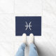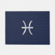 Um cromo prateado como Peixes Símbolo Zodiac em um decor impressão de textura azul de fibra de carbono marinho. Um design moderno urbano para uma ideia personalizada de presente de aniversário de excelente. Use o link "Perguntar a este Designer" para entrar em contato conosco com suas solicitações especiais de design ou para obter assistência com suas necessidades de personalização.