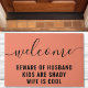 Dê as boas-vindas aos convidados com uma risada usando este tapete de porta engraçado! A mensagem divertida "Cuidado com o Marido, os Filhos São Sospeitosos, a Esposa é Legal" adiciona um toque de personalidade e diversão à entrada da sua casa. Este tapete de porta de coco durável é perfeito para uso interno ou externo, adicionando um pouco de humor à entrada da sua casa.