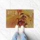 Este tapete de boas-vindas chama a atenção do visitante! Um cão de boca grande (na verdade, um animal de estimação da família tentando pegar um presente) adiciona um toque humorístico ao tapete de boas-vindas.