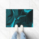 Traços em curvas ou ondulações nas cores azul turquesa, céu profundo ou ciano. Imagem de azul esverdeado com traços que alteram sua tonalidade passando do mais claro ao mais escuro, podendo causar a percepção de profundidade, metálico ou niquelado.