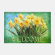 Este tapete de boas-vindas brilhante e alegre apresenta um buquê de daffodils primavera amarelos em um fundo de aquarela verde com a palavra "Bem-vindo" abaixo para sair como está ou personalizar. Projetado pelo artista mundialmente famoso ©Tim Coffey.