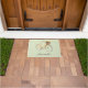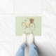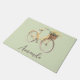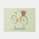 Seu nome na porta, fundo cor-de-rosa com a ilustração aquarela de um verde primavera biciclo com maçãs em uma cesta.