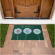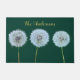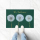 Adicione um toque personalizado à sua entrada. Este tapete ou porta de boas-vindas está pronto para ser personalizado com o seu nome em verde limão. Apresenta fotos de flores de dandelion (ahem, ervas daninhas) ou relógios de dandelion contra fundo verde-escuro.