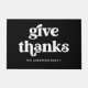 Esta simples e boho porta-voz diz "dê obrigados" em tipografia branca retrorada sobre um fundo preto escuro, e é a maneira perfeita de decorar sua casa para seus convidados jantes de Ação de Graças ou de Ação de Amizade.