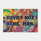 Dave não está aqui, cara. Curioso 70 anos Dizendo tapete personalizado apresenta rajadas de formas psicodélicas brilhantemente coloridas com um texto multicolorido e multicamadas que diz, "Dave não está aqui, cara." Aqueles que se lembram dos pedaços de Cheech e Chong certamente sorriem a isto. Outros vão coçar a cabeça. De qualquer forma, é um começo de conversa de excelente.