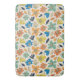 A playful, seamless repeating pattern featuring stylized multicolored flowers and leaves with textured, sketchy edges on a cream background.