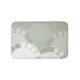 O tapete de banho mostra pontos e círculos que lembram um design de frango abstrato contra um fundo verde-claro. Para obter informações sobre estilos e personalizações, visite www.KBMD3signs.com