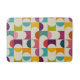 Adicione uma cor retrô ao seu banheiro com este tapete. Esta impressão geométrica tem formas simples de coordenação de semicírculo em azul-turquesa, amarelo-sol, roxo-escuro, verde limão, framboesa, laranja, rosa e creme. O design abstrato tem uma legal aparência moderna. Este tapete de banho coordena-se com outros itens da Coleção de Primaveras de Palma de Delfuneum.