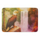 An oil pastel pastel painting of a Bald Eagle sitting upon a boulder in the woods Near a large waterfall the painting has been enhanced to look aged. This bathroom rug will give the room a wilderness atmosphere.