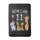 Feliz aniversário de 11. Design engraçado e adorável com um elefante giro, dois furões e uma girafa celebrando seu aniversário no zoológico.