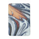 Um design abstrato de arte de girar a água do rio em azul, preto, laranja e branco.