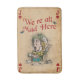 Desenho divertido do Mad Hatter em um cartão de corações. "Somos Todos Loucos Aqui" é o seu notável ditado a todos os seus convidados da festa do chá.