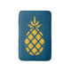 Design de abacaxi geométrico em amarelo brilhante no tapete azul.