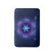 Estrelas fractais, cor-de-rosa e azul, entrelaçadas de David sobre fundo escuro com texto hebraico lendo "Ani L'Dodi V'Dodi Li" (Eu sou meu amado e meu amado é meu).
