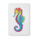 Articulação artificial, brilhante, arco-íris, cavalo de mar poligonal sobre fundo branco. Tatuagem brilhante.