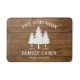Um tapete de banho com tema rústico em na moda, país, com seu nome e "Cabina da família", Ranch, Cottage ou outro texto, juntamente com sua data e localização estabelecidas, se desejar. Este design personalizado, único, apresenta um texto no estilo do país rústico com uma silhueta branca de pinheiros em um impressão de tábuas de madeira. Para ver mais designs como esta, sinta-se à vontade para visitar a minha loja aqui em "Zazzle.com/Rustic_Charm". Obrigados.