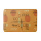 Um design moderno de abstrato-arte que teria ajustado nos anos 50. Várias formas de círculos ovais e linhas em ocre, laranja e ouro.