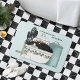 Um gato preto e branco liso sentado numa tigela num balcão de uma cozinha negociando com o seu humano. Eles querem comida em troca da tigela em que estão