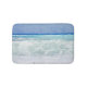 Um seascape com as ondas que deixam de funcionar em uma praia ensolarada é representado nesta imagem gráfica da aguarela no aqua e no azul para criar uma imagem de relaxamento que traga um olhar náutico fresco a sua decoração do banheiro.