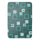 Um padrão de arte inspirado moderno de meio século que tem linhas, esboçou formas e quadrados em lindos tons escuros e turquesas.