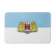 Bath mat com design com pavilhão de Riga, capital da Letónia; bandeira branca e azul com casacos de armas com dois leões ouro segurando um escudo no centro