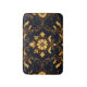 Dieses Bild zeigt ein nahtloses barockes Muster mit goldenen und gelben floralen Ornamenten auf dunklem Hintergrund. Die detailreichen, symmetrischen Elemente verleihen dem Design einen luxuriösen, klassischen und eleganten Charakter, ideal für Tapeten, Textilien oder hochwertige Oberflächengestaltung.