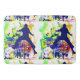 Um tapete de banheira de festas tem uma dançarina com fundo de paisagem com múltiplas cores de pintura. Há outros acessórios que combinam com este tapete.