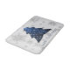 Adicione um toque festivo à decoração do banho esta temporada de férias com um tapete azul festivo de árvore de Natal. Bath mat design apresenta uma vibrante e festiva árvore de Natal adornada com cinzas em queda e flocos de neve brancos com um cartões de natal. Itens adicionais de presentes e feriados disponíveis com este design também.
