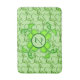 A Ivy sai em verde-claro sobre fundo verde-claro. Quatro folhas individuais sólidas têm pontas no centro, com círculo verde escuro com fundo verde claro no centro. Os contornos das folhas do solteiro são replicados para entrelaçamento como fundo. Personalize alterando o inicial no centro do círculo, a mesma cor que o contorno do círculo.