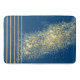 Bath Mat Elegante, listras azuis e douradas, coordenadas com outros itens da coleção azul e dourada, incluindo as linhas metálicas Chá azul e dourada.
