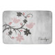 Adicione um toque divertido à sua casa de banho com um tapete personalizado de pássaros cor-de-rosa. Bath mat design apresenta um par de pombinhos adornados com uma vinha floral e uma área que você pode personalizar com seu nome. Ofertas adicionais disponíveis com este design, bem como uma variedade de cores.